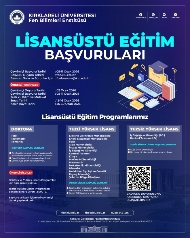 Üniversitemiz Fen Bilimleri Enstitüsü,... |