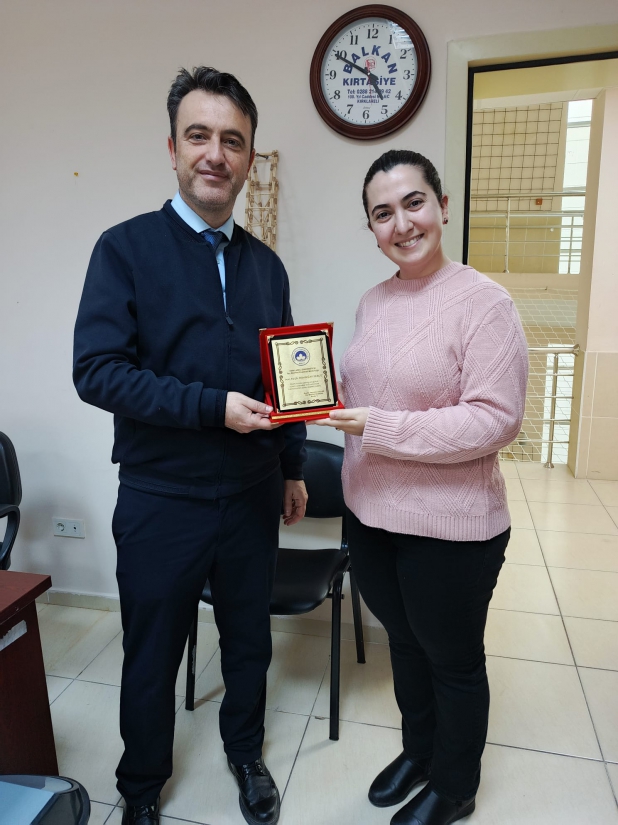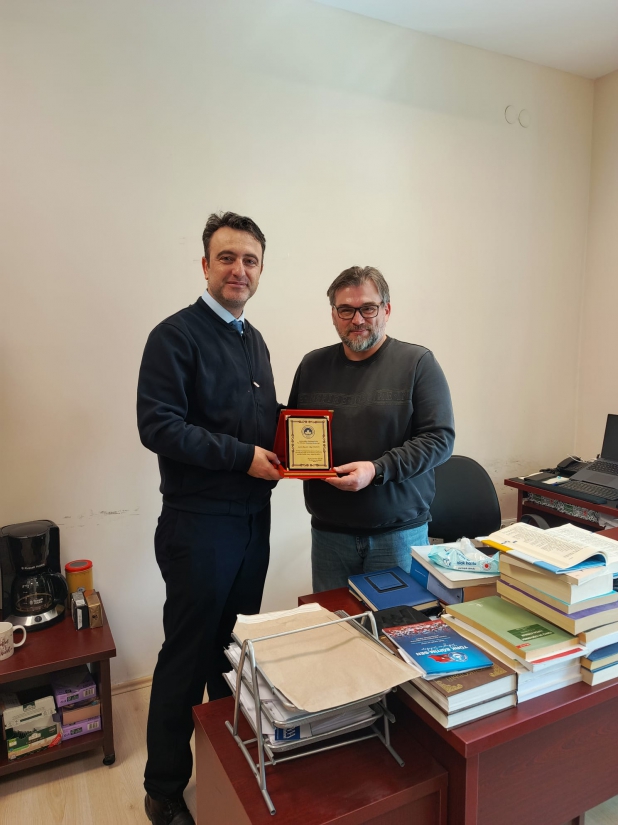 Enstitümüz geçmiş dönem Mühendislik ve Fen Bilimleri Dergisi Dil Editörü Doç.Dr. İlker TOSUN, tez kontrol görevlileri Arş.Gör. Pelin DOĞAN NERGİZ ve Arş.Gör.Dr. Hayriye Göknur AĞCA KÜÇÜKAYDIN'a göstermiş oldukları özverili çalışmalar sebebiyle görev yaptıkları birimlerde ziyaret edilerek, Enstitümüz Müdürü Doç.Dr. Hayrettin TOYLAN tarafından teşekkür plaketleri takdim edildi.