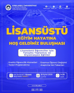 ![]() | LİSANSÜSTÜ EĞİTİM HAYATINA HOŞ GELDİNİZ BULUŞMASI-2025 DUYURUSU 23/09/2025 233 Okunma Lisansüstü Eğitim Hayatına Hoşgeldiniz Buluşması-2025